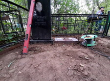 Первым делом мы принялись за демонтаж: сняли памятники с основания и поправили постаменты, надёжно укрепив их в земле. Таким образом мы избежали дальнейшего перекоса памятников и поставили оба надгробья на один уровень.