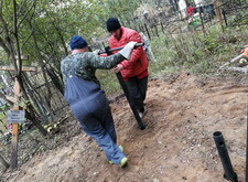 Затем разравниваем землю на территории могилы и выкапываем траншею под заливку бетонного фундамента.