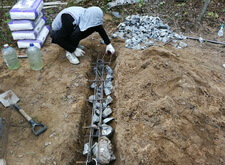 Виды работ: Создали ленточный фондамент на сваях,