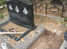 Для начала мы демонтировали уже имеющиеся элементы: снесли бетонный цоколь и изъяли стоящие кресты.