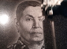Пришло время нанести портреты на плиту. Процесс гравировки на фото ниже.