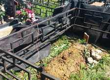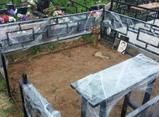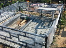 Перед нами стандартная могила, где уже захоронено два человека. Мы оставляем без изменения только ограду, ее мы только надежно зацементируем и покрасим. Все остальное мы изготовим и установим.