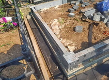 Укрываем внутреннюю зону участка геотекстилем и приносим три массивные прямоугольные плиты, которые в дальнейшем послужат наземным покрытием могилы.