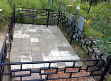 На момент нашего приезда на кладбище место захоронения выглядело откровенно заброшенным: единственным украшением участка был невысокий православный крест, остальная же территория могилы густо заросла сорняком. Заказчик пожелал установить ограду на участке, а также выложить территорию места захоронения бетонной плиткой.