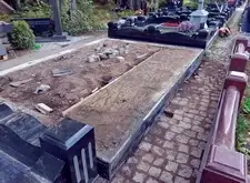 После того, как работа была проведена, клиент посчитал, что в задней части места захоронения требуется дополнительное укрепление. Мы вкрутили пять дополнительных свай, сварили новую сетку и залили ещё одну площадку, которая будет являться основанием для памятников.