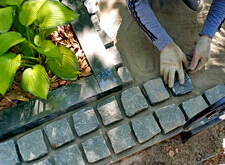 Приступаем к выкладке брусчатки, параллельно с этим устанавливаем лавочку.