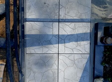 Далее мы покрыли участок бетонной плиткой, предварительно установив столик и лавочку.
