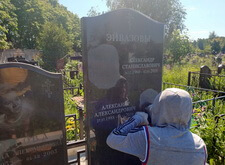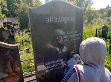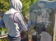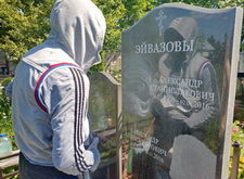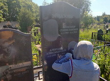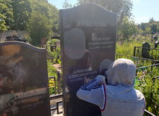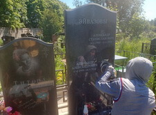 Замена двух портретов на памятнике прямо на кладбище